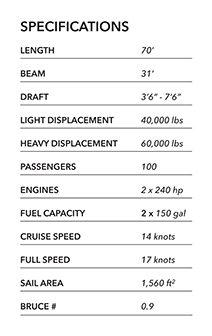 The Gold Coast Yachts series of Day Charter Sailing Catamarans set the standard for resort service excellence. As the market has grown and matured, the operators have had to respond with more sophisticated vessels. The new generation of charter cats must have obvious passenger comfort and safety integrated into aesthetic, reliable, high performance machines. As a custom builder, we are able to cater to the specific nature of each route arranging seating, bar, food service and performance characteristics accordingly. United States Coast Guard Certification is available for all models.