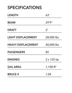 to the specific nature of each route arranging seating, bar, food service and performance characteristics accordingly. United States Coast Guard Certification is available for all models.