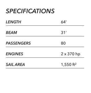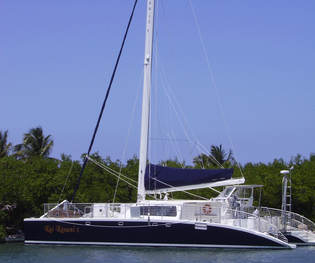 Kai Kanani has to be considered a serious motor sailor as she can easily achieve twenty knots under power. She sports a High Modulus designed carbon fiber spar built in our shop to augment her sailing performance. She is and all glass/foam vessel with resin infused and vacuum bagged parts. She was USCG certified for 80 passengers.
