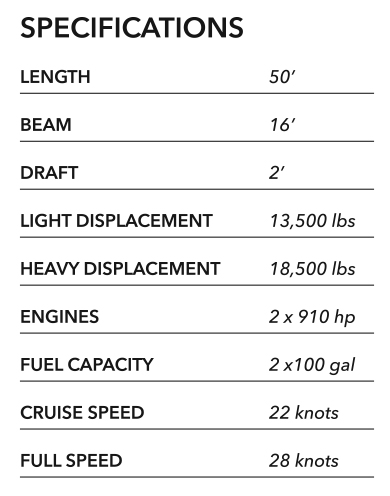 Warren Mosler came to us with the idea of expanding the well-accepted 47’ wave-piercer series into a private cruising vessel for he and his family. He used the designer for his automobile series to craft his personal interior and exterior style placing all onto our hulls.